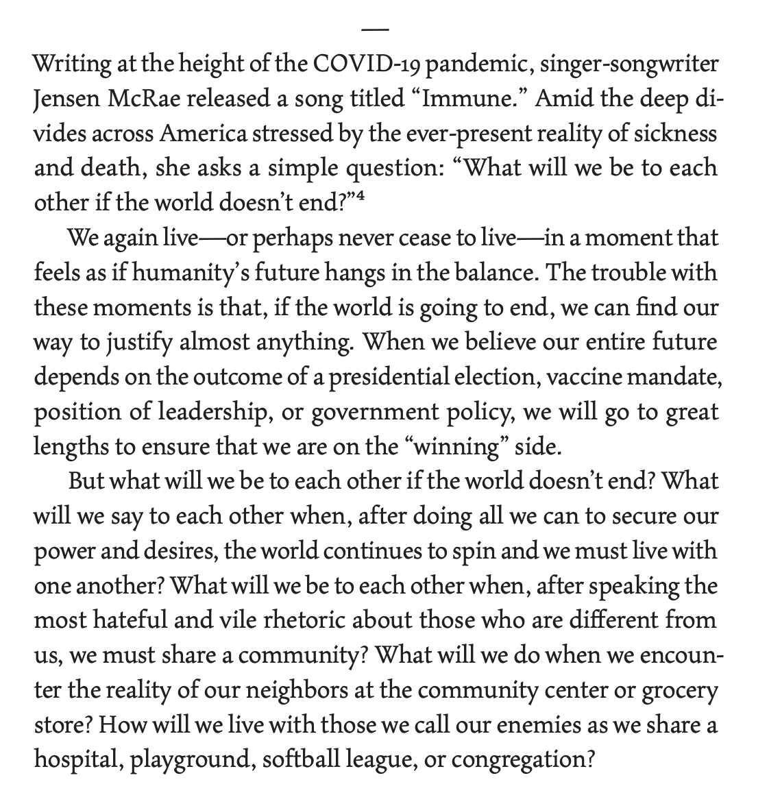 I received an Instagram DM this week from an artist1 who shared his excitement about finding both Jensen McRae and Søren Kierkegaard quoted in just the first few pages of my book, Becoming Neighbors.